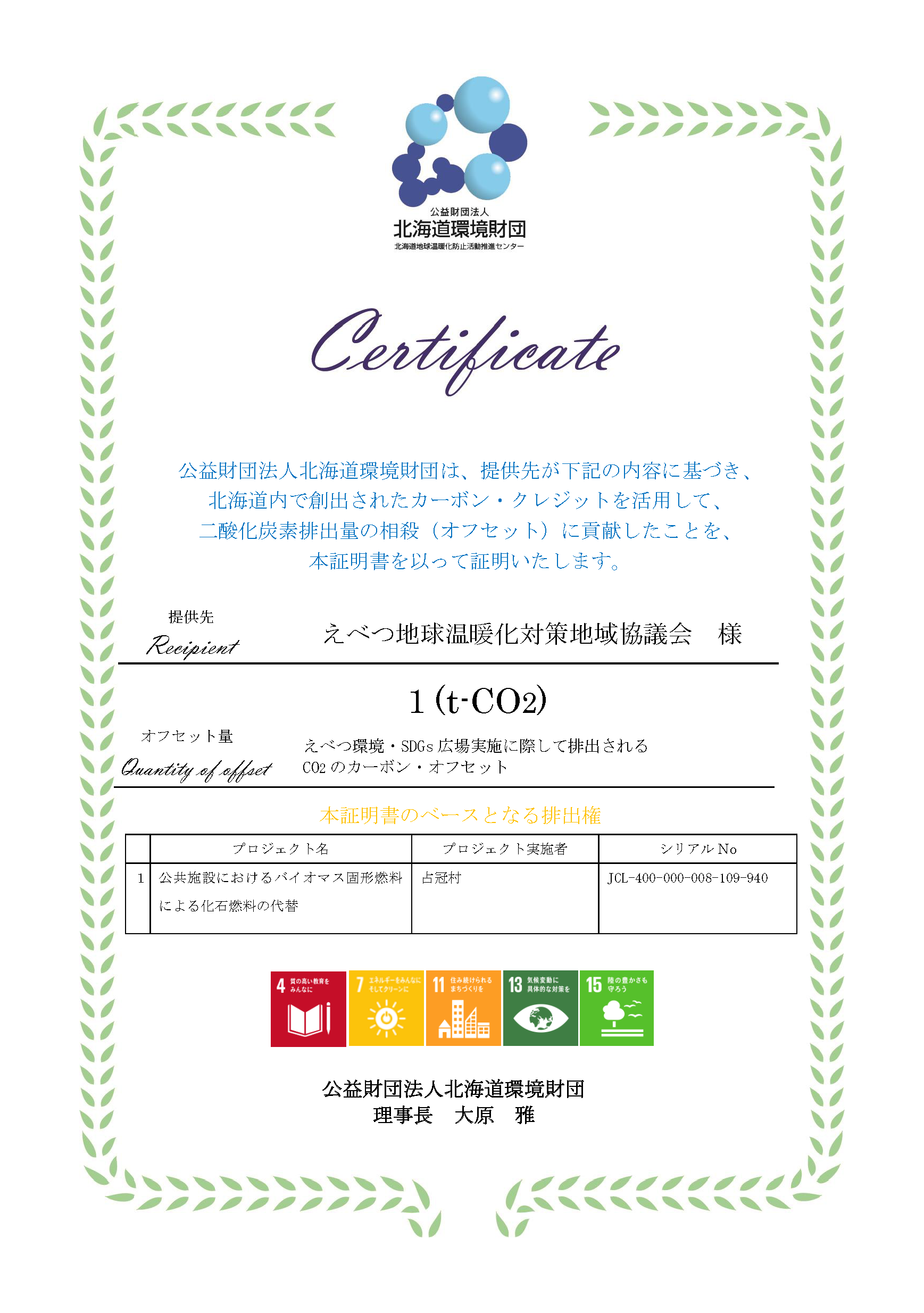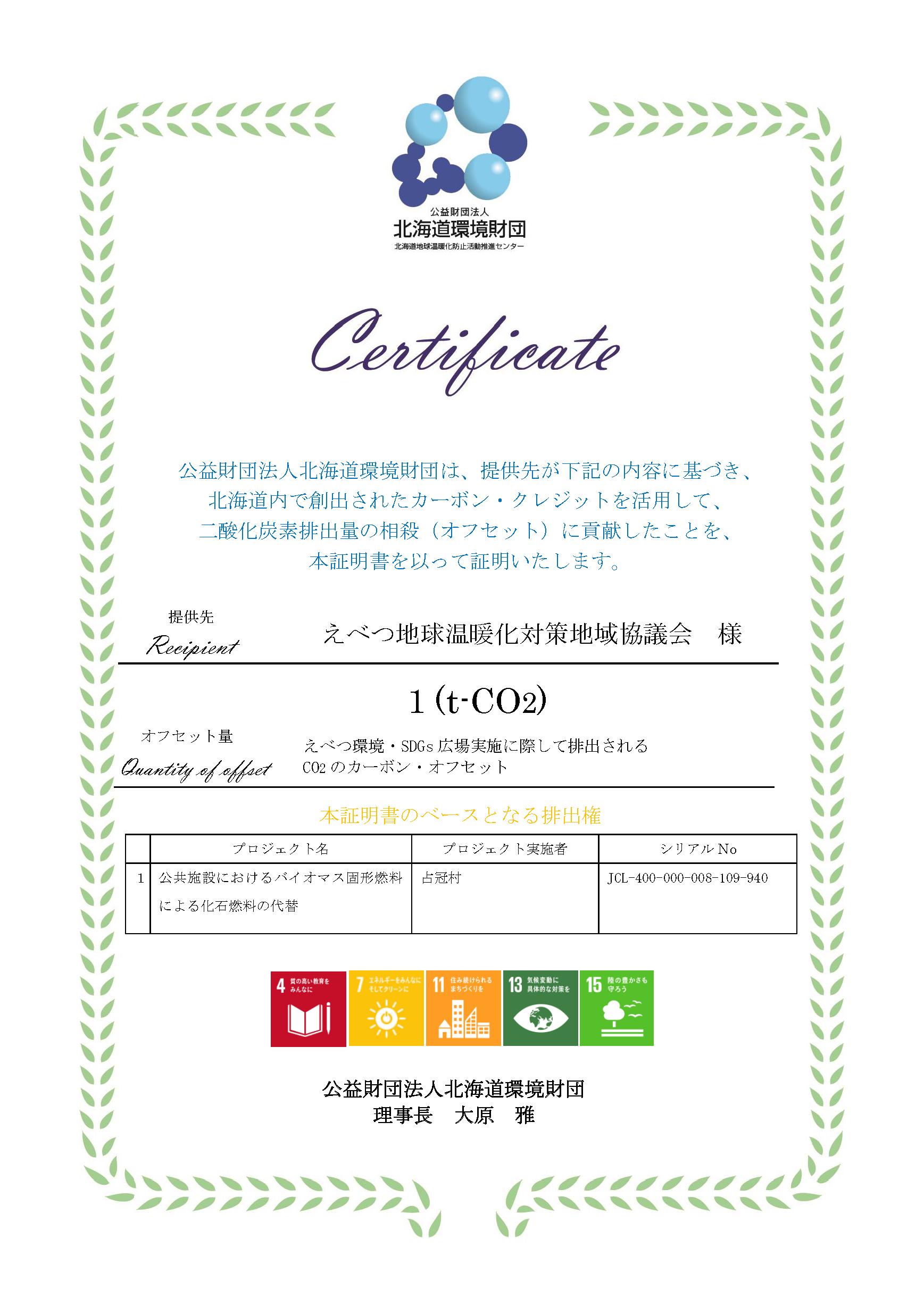 > 証明書_えべつ環境・SDGs広場