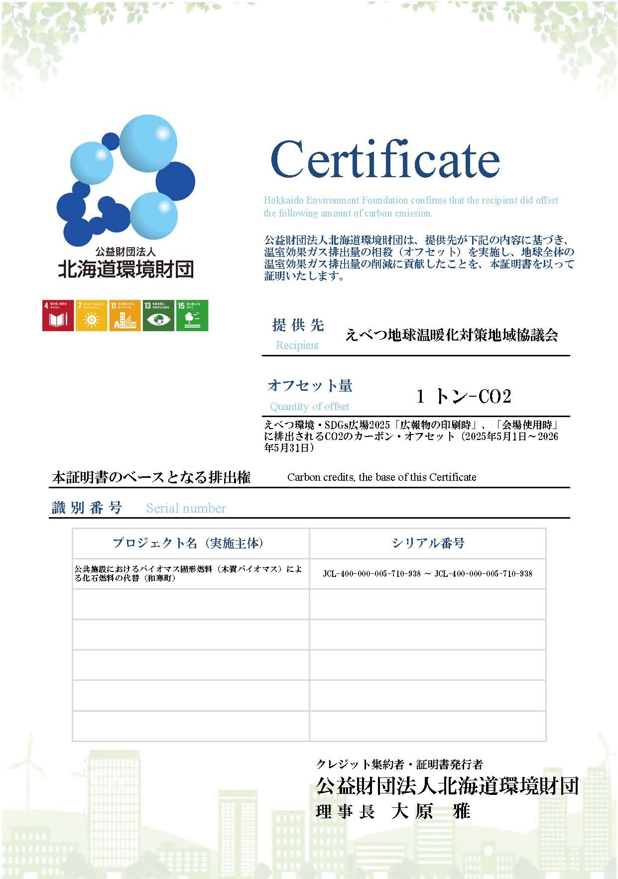 オフセット証書(えへ&#12441;つ環境広場)